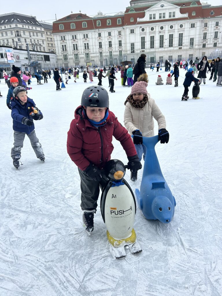 Die 1c durfte einen besonderen Ausflug erleben: Beim Eislaufkurs am Wiener Eislaufverein wagten sich die Kinder mit großer Begeisterung aufs Eis. Mit viel Bewegung, Lachen und ersten Eislaufversuchen verging die Zeit wie im Flug.