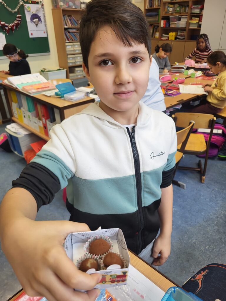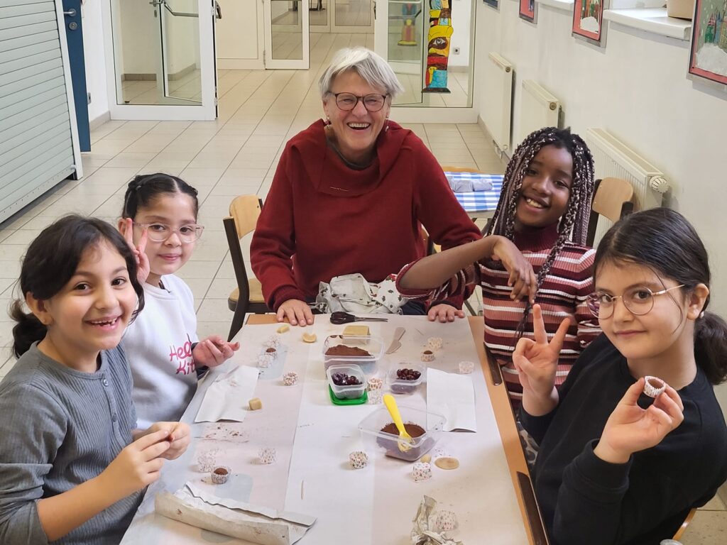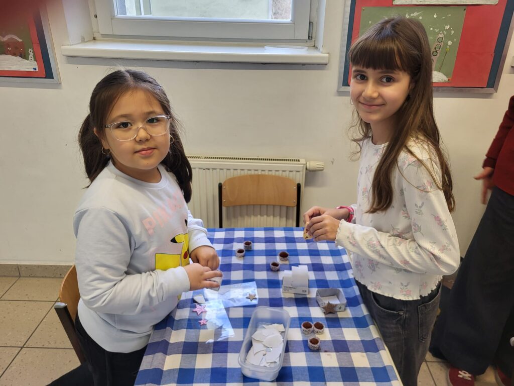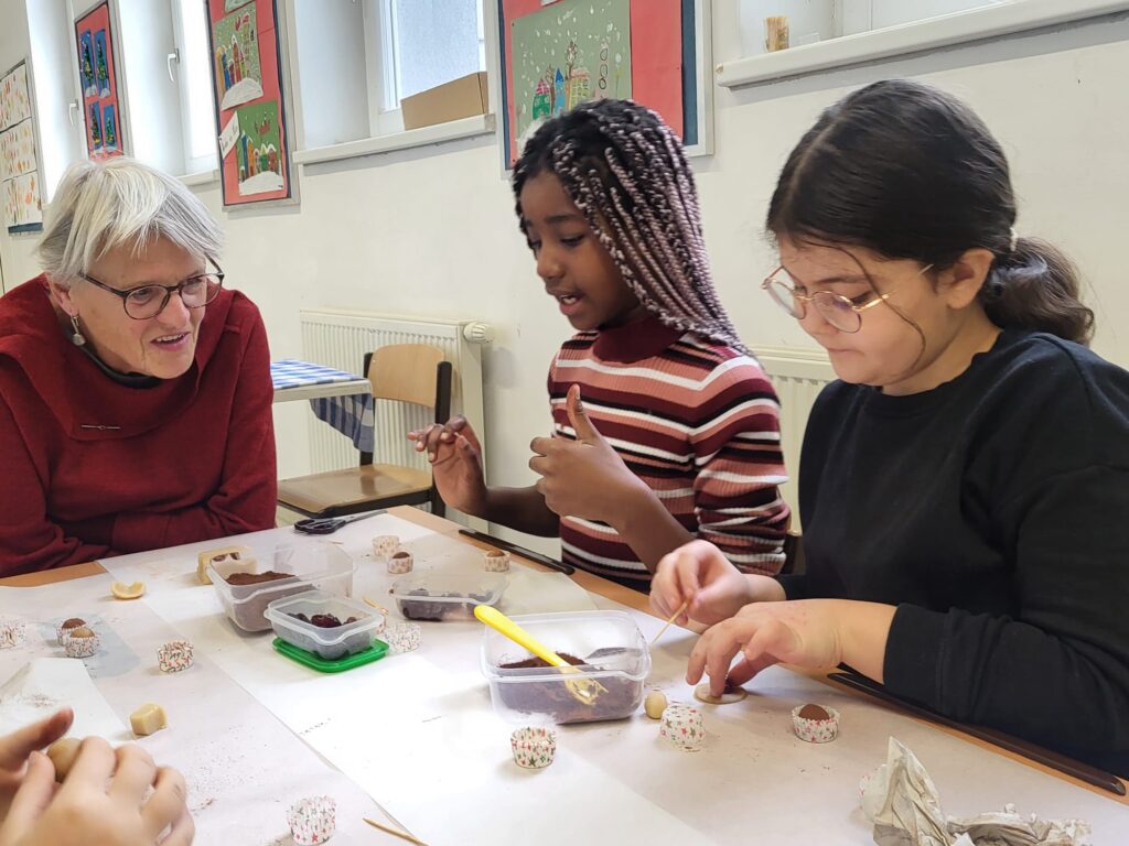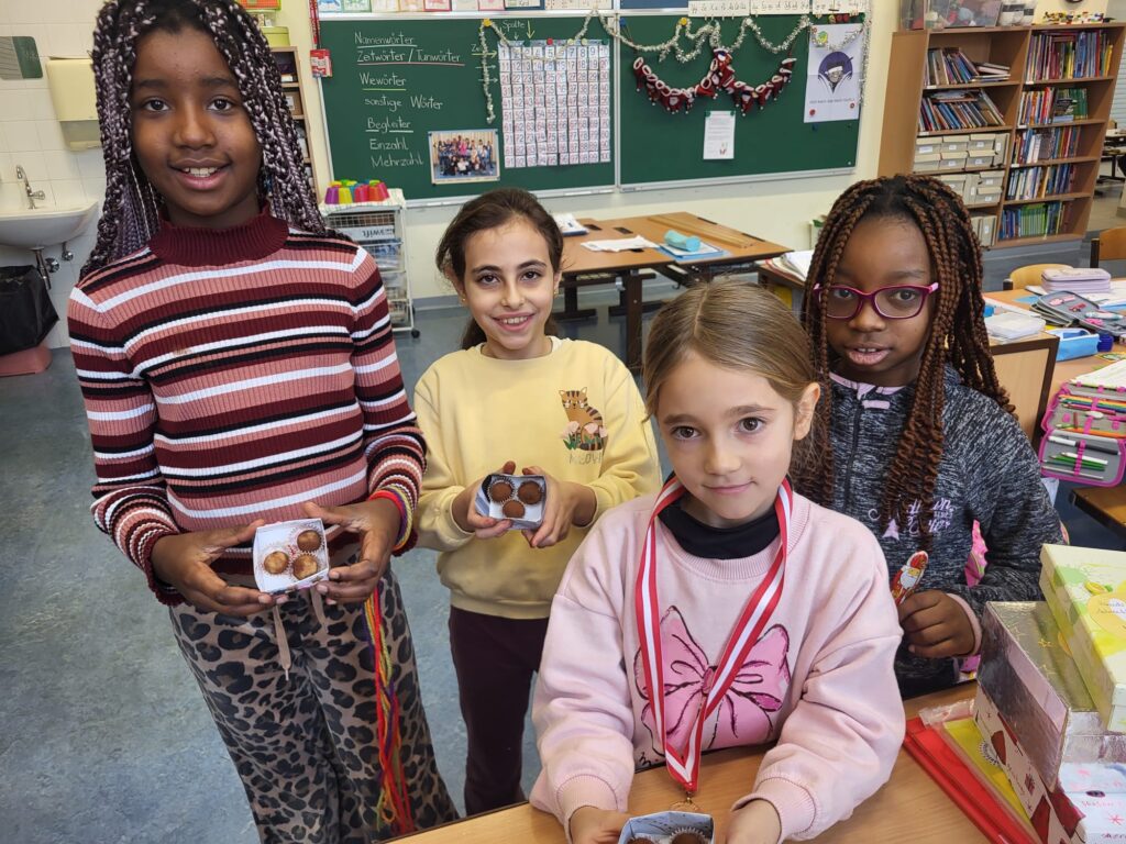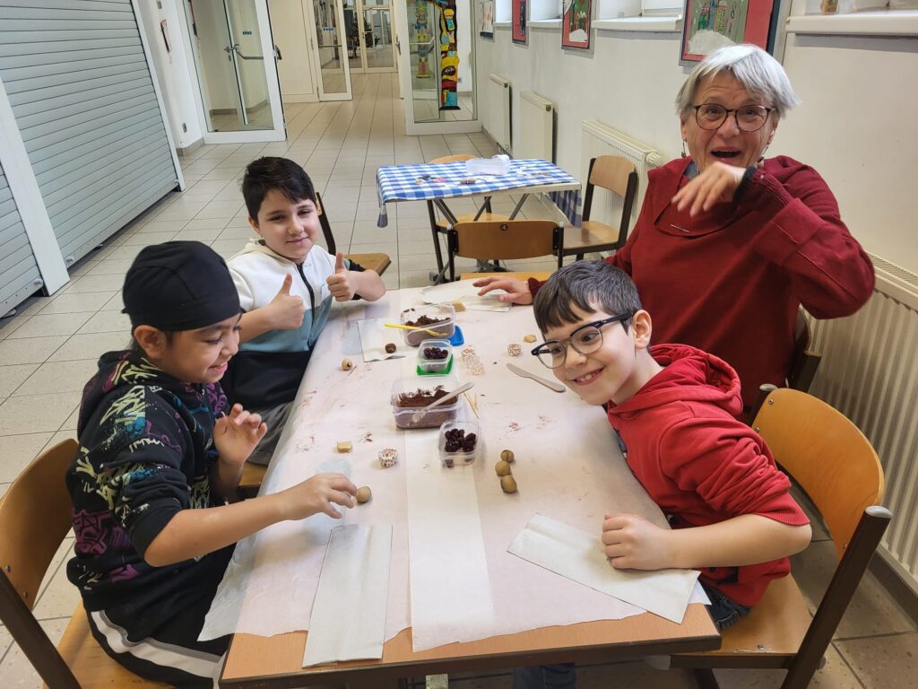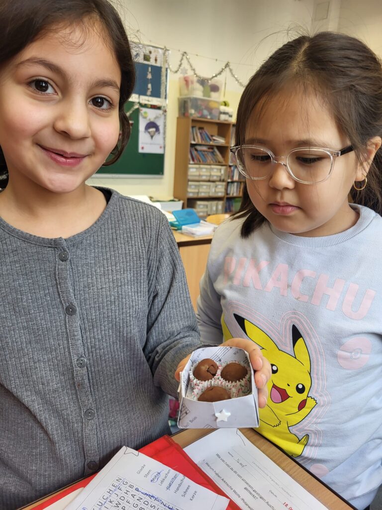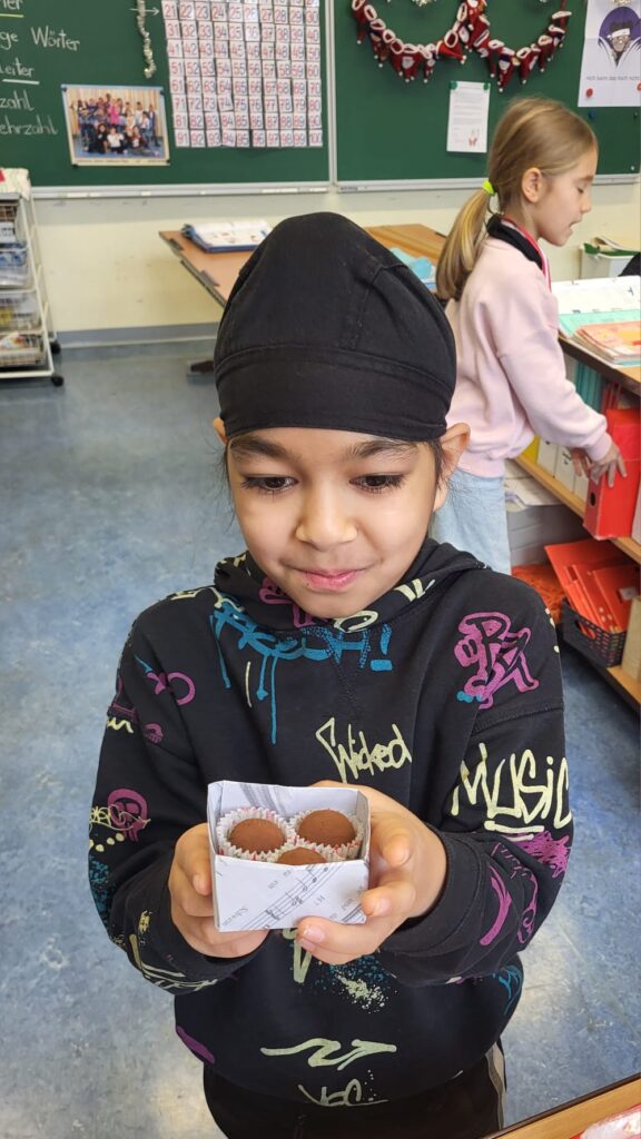 Unsere supertolle Lesepatin Silvia hat heute mit den Kindern der 2a Marzipan-Kartoffeln gemacht. Verpackt wurden diese Köstlichkeiten in von Silvia selbst gefalteten kleinen Schachteln!