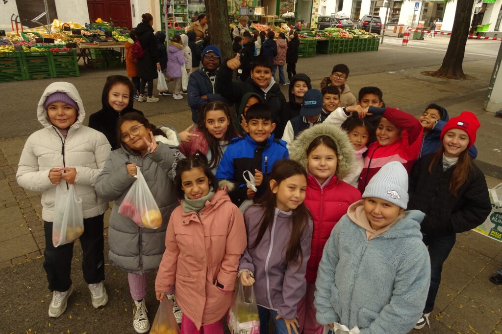 Am 1. Oktober 2025 waren die 2b und 3b am Meidlinger Markt, um Gemüse und Obst einzukaufen. Der Obstsalat wurde anschließend gleich zubereitet, zwei große Schüsseln pro Klasse. Alles wurde leergegessen! Am nächsten Tag schnitten die Kinder das Gemüse auf, auch hier griffen die Kinder gerne zu.