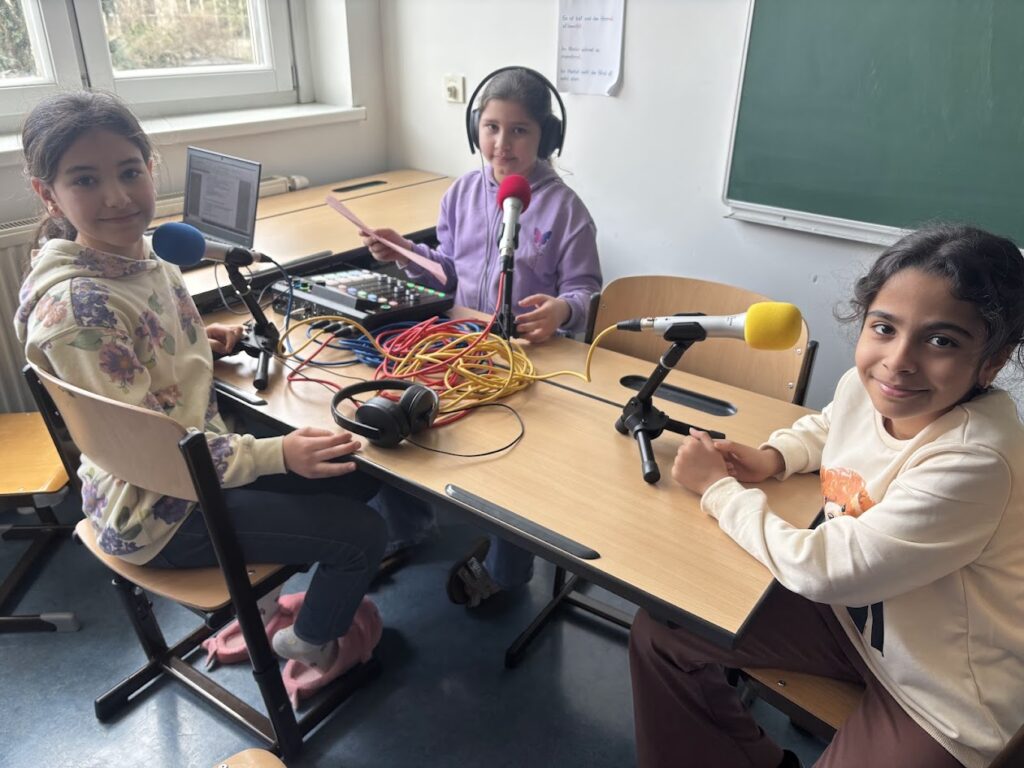Im Rahmen des Projekts „Bounce Back“ nahmen die Kinder der 4c gemeinsam mit Mischa Hendel einen Podcast mit Tipps und Tricks zum Entspannen bei Stress und in schwierigen Situationen auf. Dafür wurden zuerst die Beiträge in Kleingruppen geschrieben, kontrolliert und geübt. Danach wurden die einzelnen Beiträge in einem mobilen Tonstudio aufgenommen. Beim Anhören der ungeschnittenen